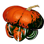 Delicata or Peanut (RG/COG) C. pepo (90-100 days) 1-2 lbs., cream colored with dark green stripes, ideal for small households. Heavy yields, medium vines, deep orange-yellow flesh.